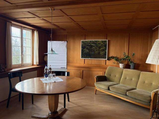 Zum Beispiel der multifunktionale Seminarraum. Er ist ruhig gelegen, mit Holz ausgebaut und bietet einen schönen Weitblick bis zu den Alpen.