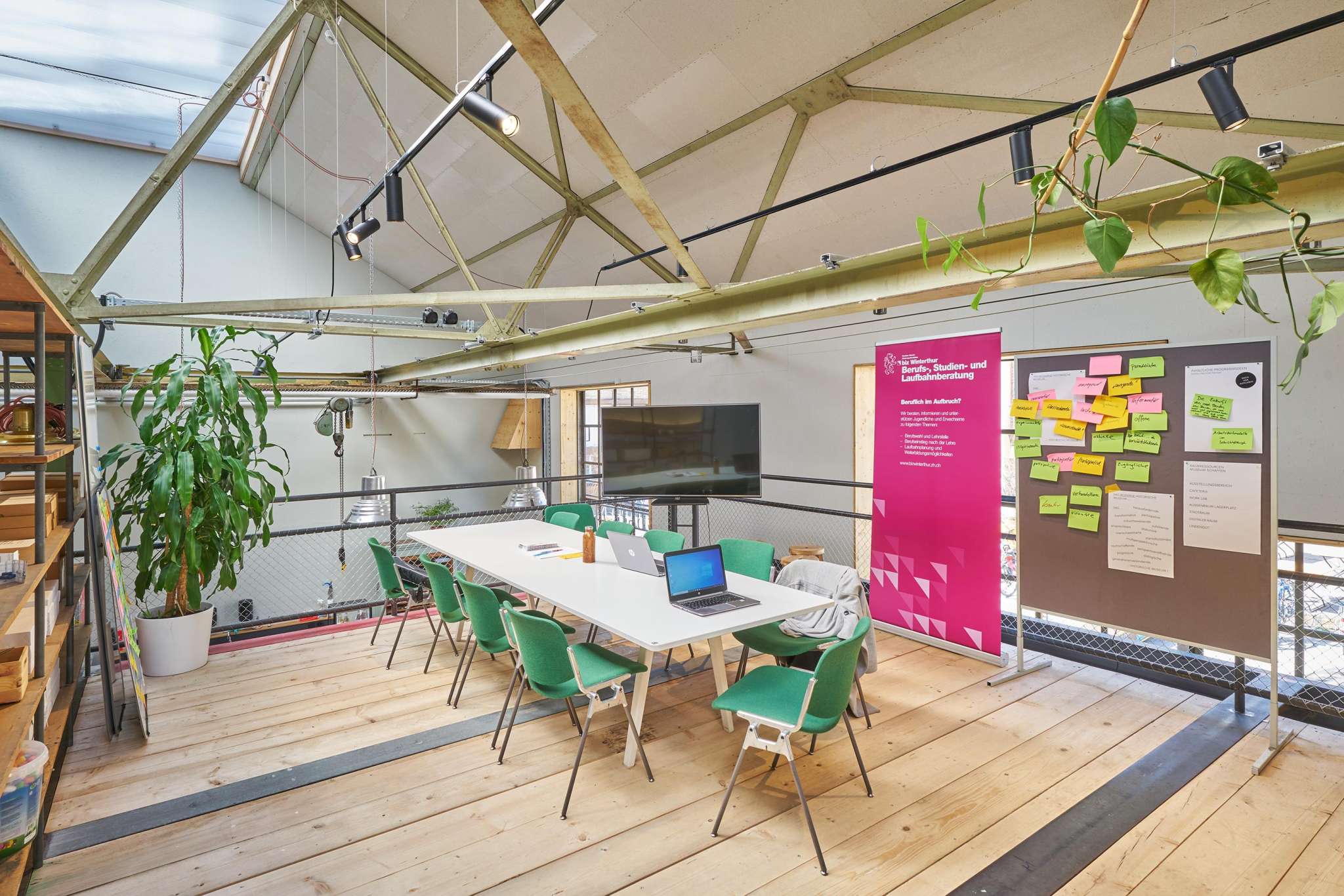 Gelegen auf dem ehemaligen Sulzerareal wurde die Halle am Lagerplatz 9 für die Spritzerei von Lokomotiven genutzt. Heute präsentiert sie sich luftig leicht, vereint musealen Hintergrund mit industriellem Chic und bietet ein tolles Ambiente für deinen Anlass. Genauere Informationen: https://www.museumschaffen.ch/de/raummiete/