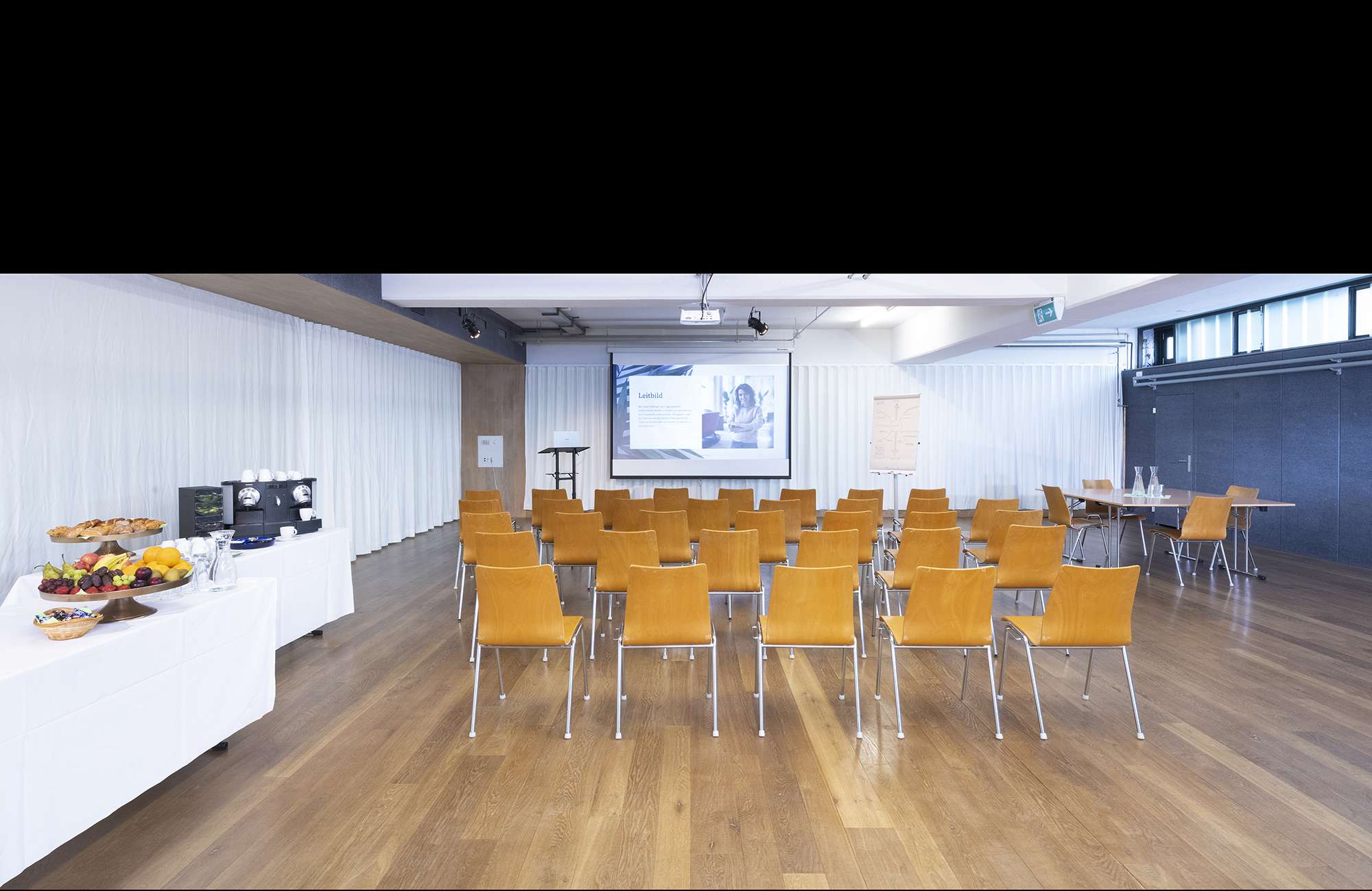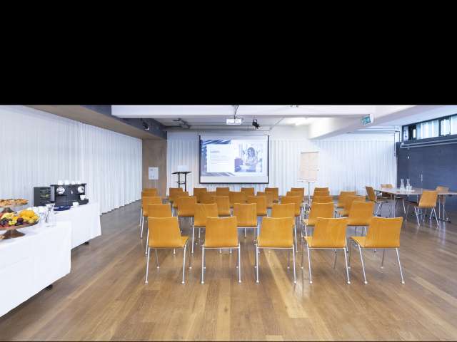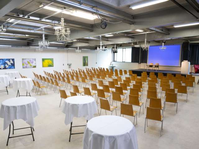 Die Halle 1, unser grosszügiger, lichtdurchfluteter Raum ist eine vielseitige Option für unterschiedlichste Veranstaltungen. Sie eignet sich ideal für Seminare, Workshops, Schulungstage sowie festliche Veranstaltungen mit gedeckten Tischen. Darüber hinaus bietet sie eine ausgezeichnete Umgebung für Bühnenauftritte und Barservice mit Stehpublikum. Bei Bedarf kannst du auch die zusätzlichen Räumlichkeiten flexibel hinzubuchen. Beamer, Grossleinwand sowie eine Profi-Musikanlage sind fix installiert und können gerne dazu gemietet werden.