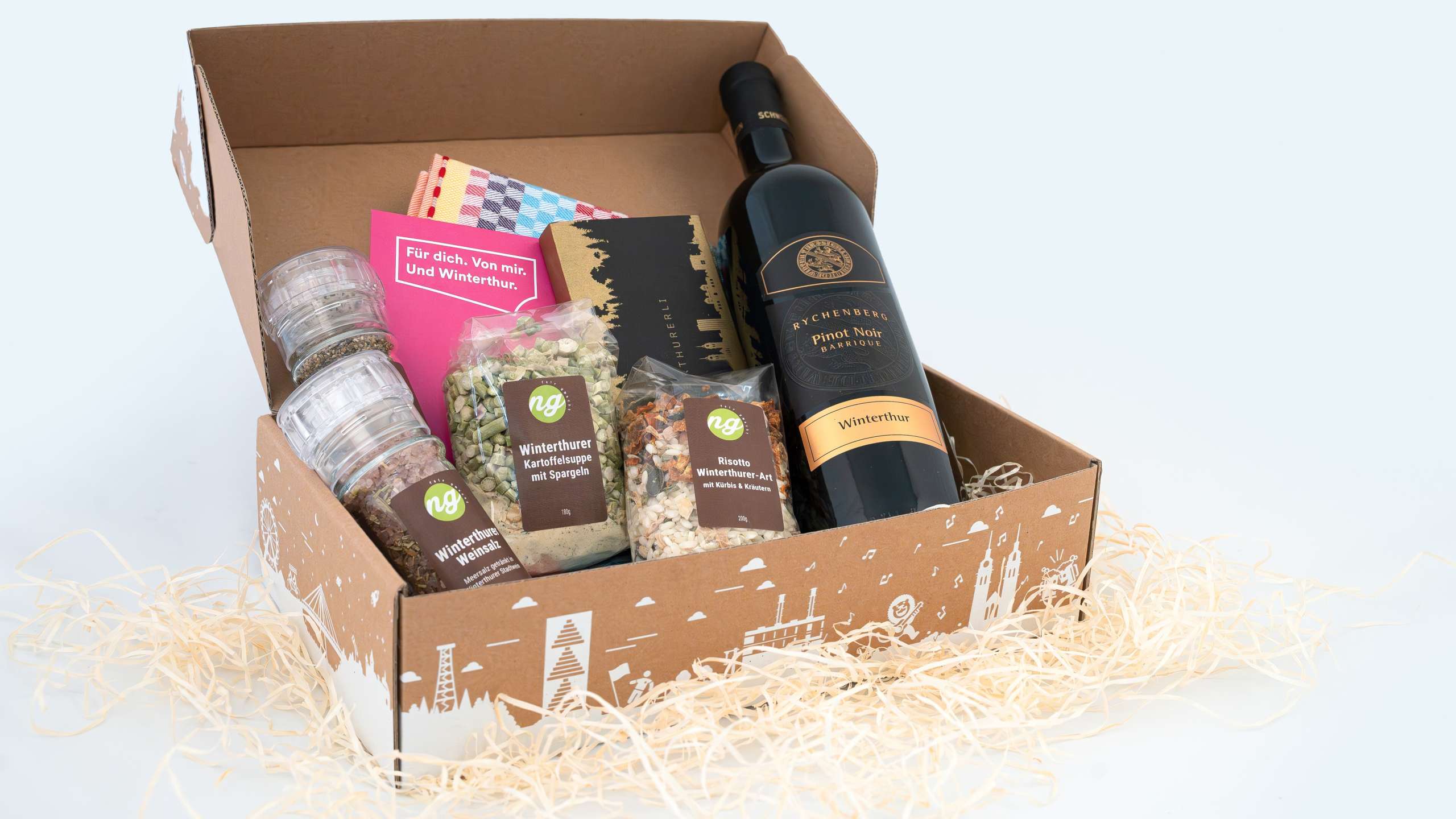 Die besinnlichste Zeit des Jahres steht kurz bevor: Bald ist Weihnachten. Uns ist bewusst, dass die Suche nach dem perfekten Winterthurer Geschenk nicht einfach ist. Deshalb hat unser Team aus der Tourist Information am Hauptbahnhof Winterthur die passende Lösung für dich: Sechs verschiedene Geschenkboxen voller regionaler Produkte – aus Winterthur für Winterthur.